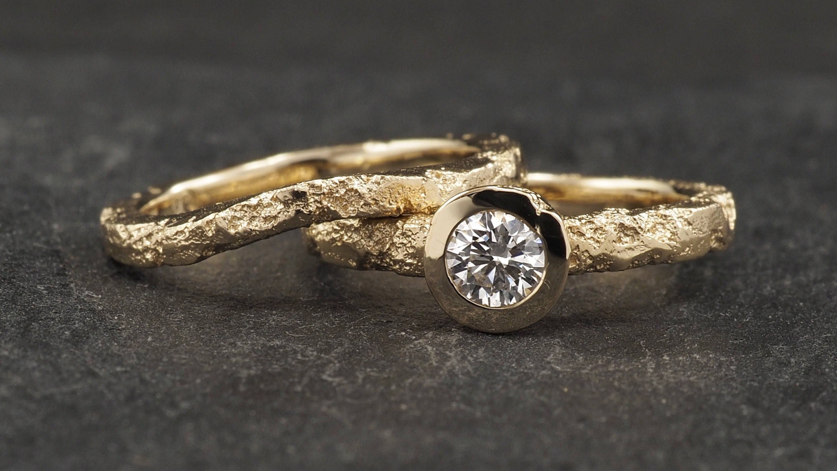 The Montes Collection redefines modern engagement and wedding rings, designed for those who seek bold, sculptural jewellery with a distinct connection to landscape and form. Each ring features individually textured surfaces on the top half, inspired by rugged mountain peaks, while the bottom half remains smooth and refined, symbolizing unity and enduring strength.
