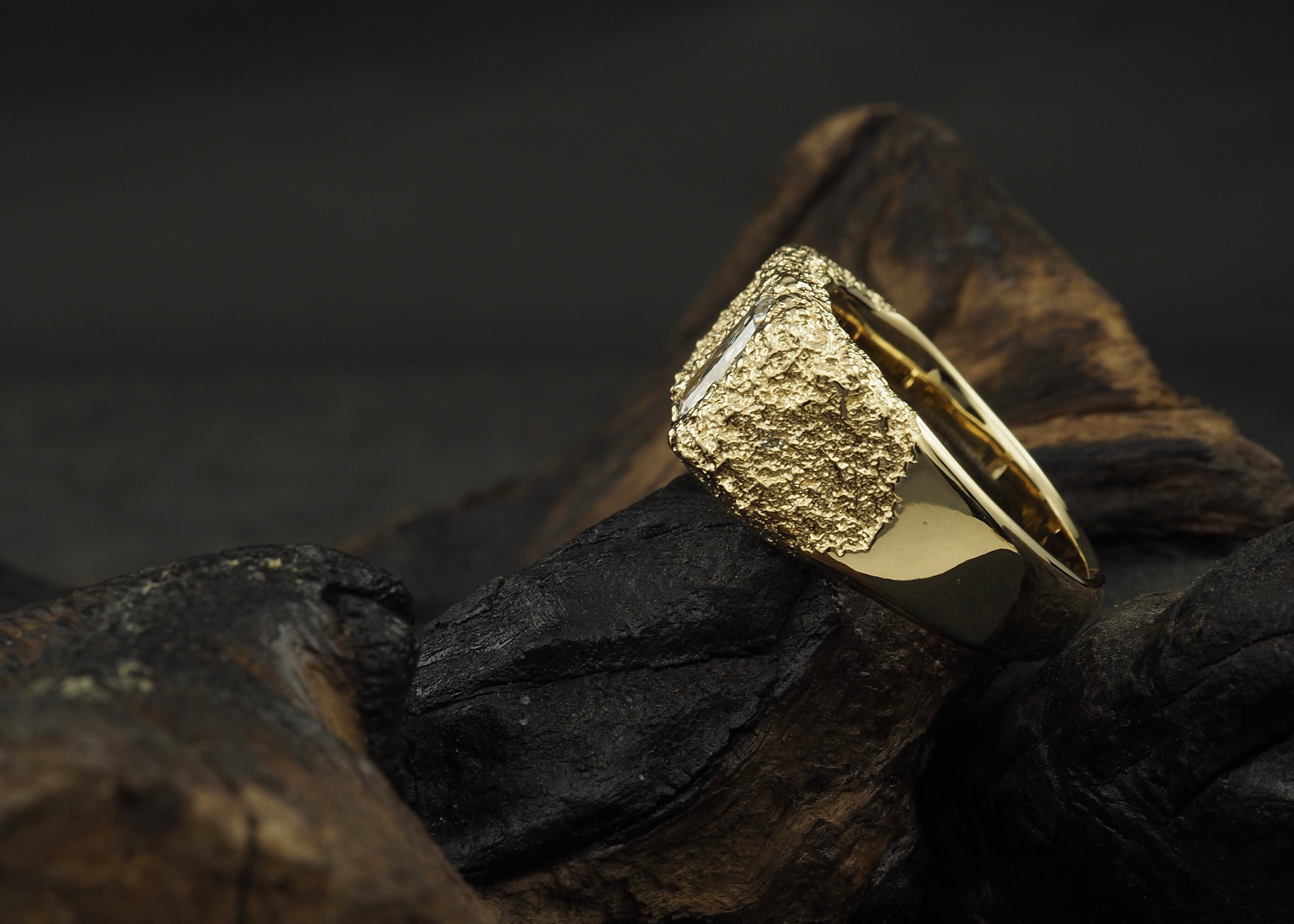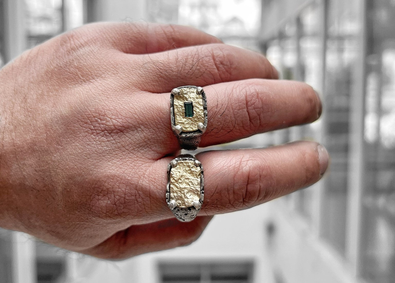 Crafted in sterling silver and 9K, or 18K yellow gold, these rings stand out whether as a wedding band or a dress ring for those who embrace heritage, individuality, and contemporary craftsmanship. The Montes design bridges raw textures with modern elegance, perfect for couples seeking unconventional, meaningful jewellery