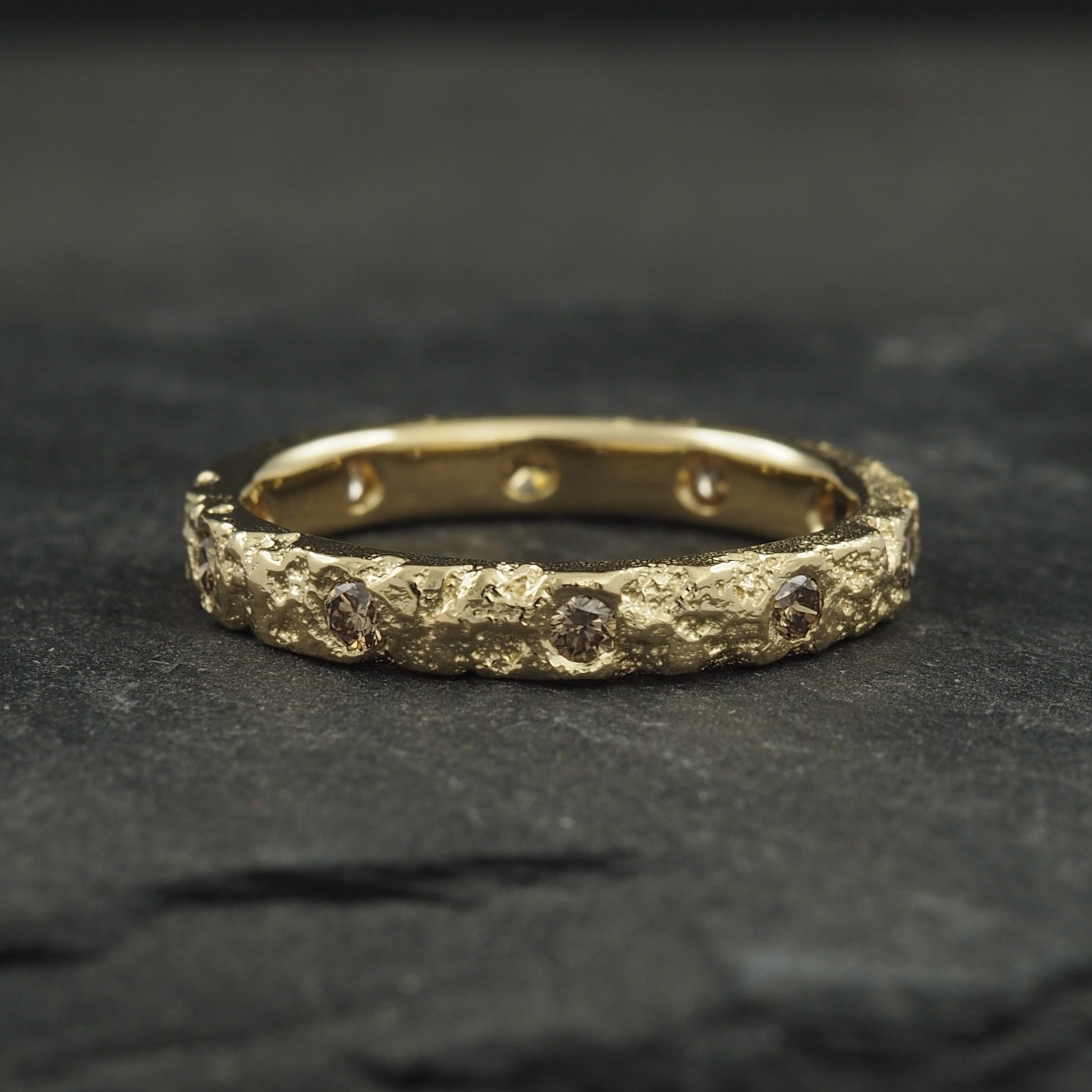 Customer Crater diamond band in 18k yellow gold with 10 champagne diamonds set equally around