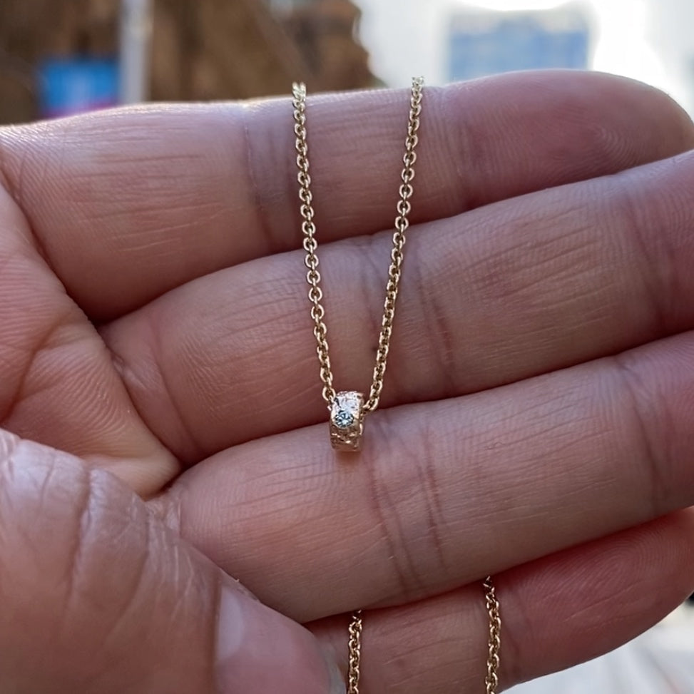 Custom three diamond bead pendant with a baby blue diamond and two white diamonds