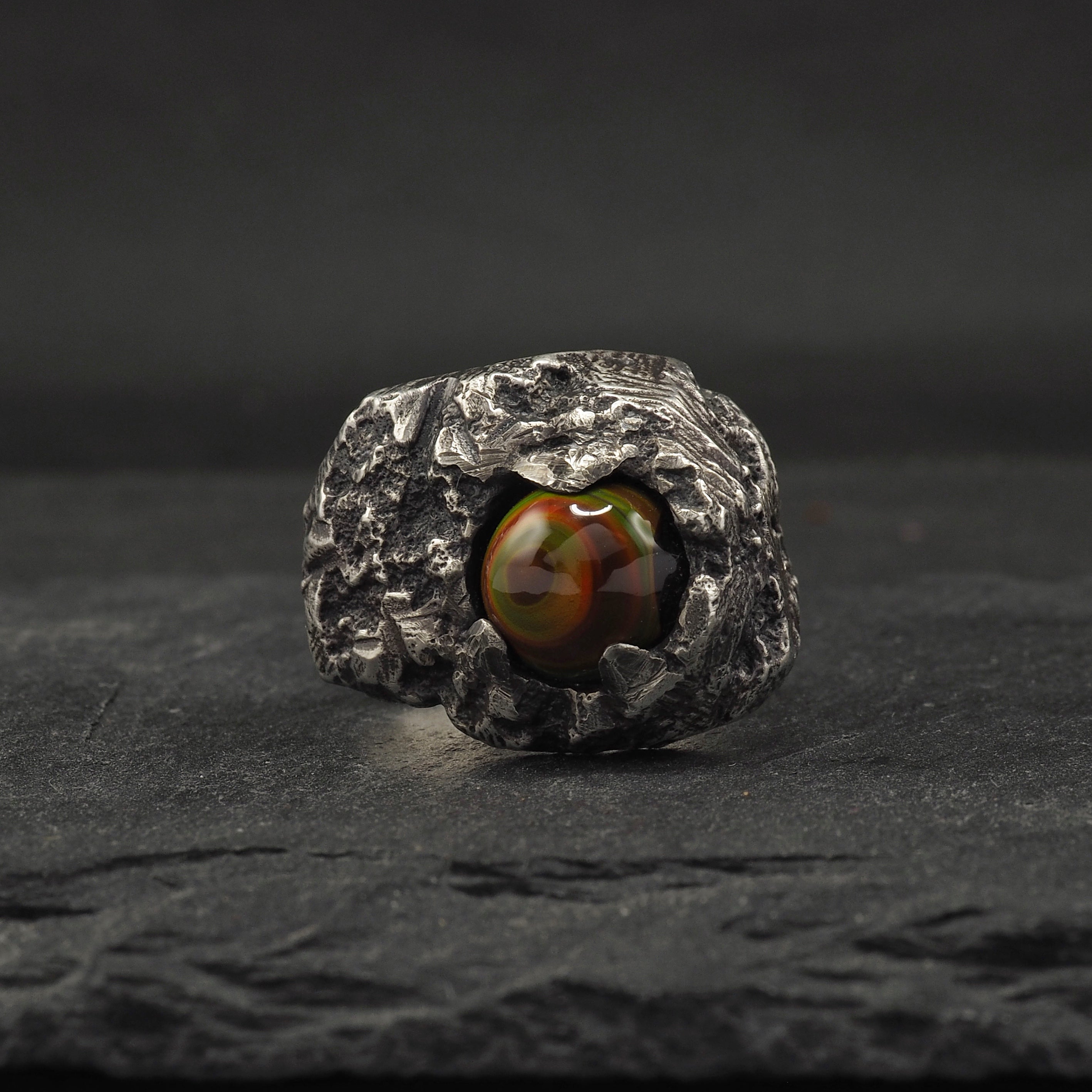 Custom Eon signet with a Arizona fire agate