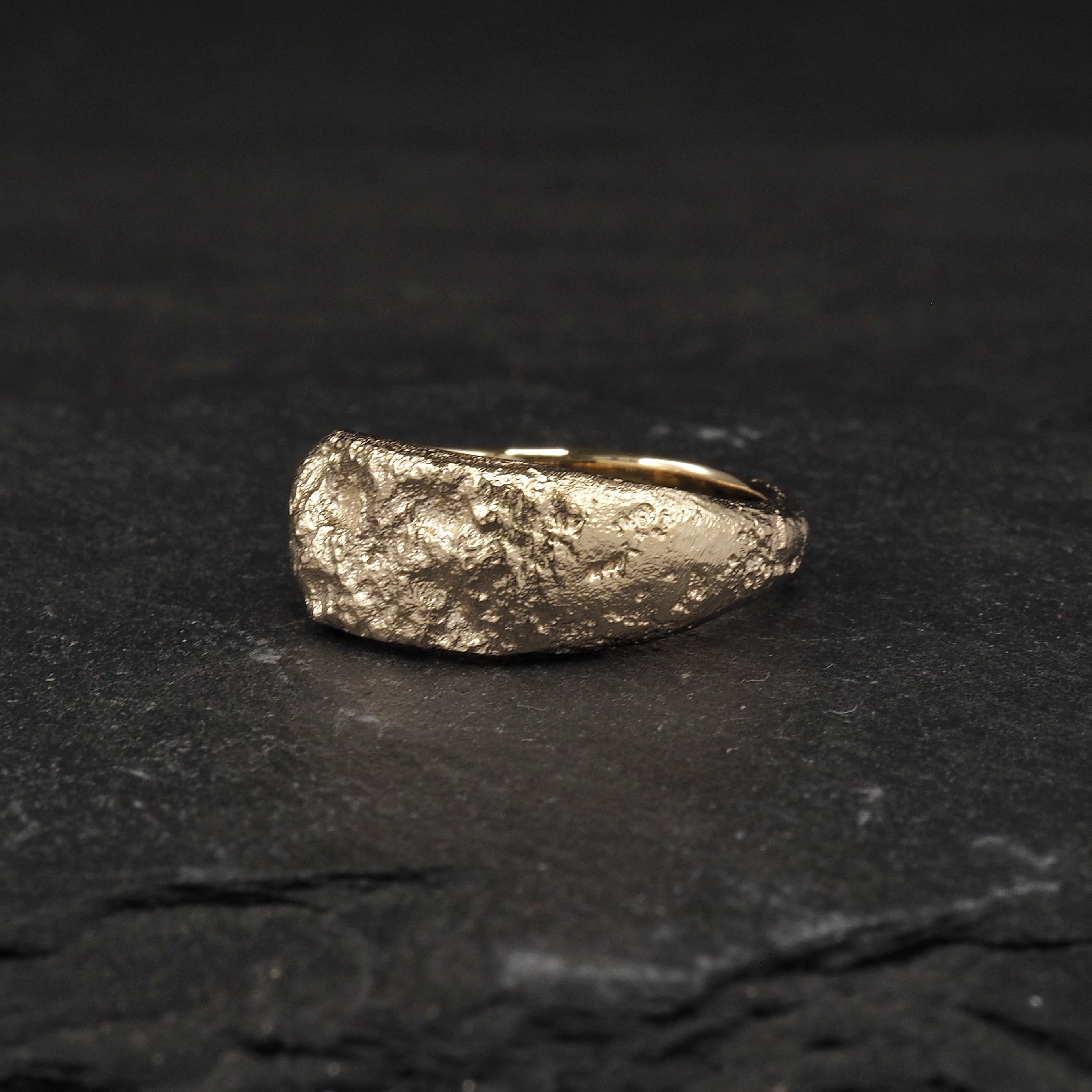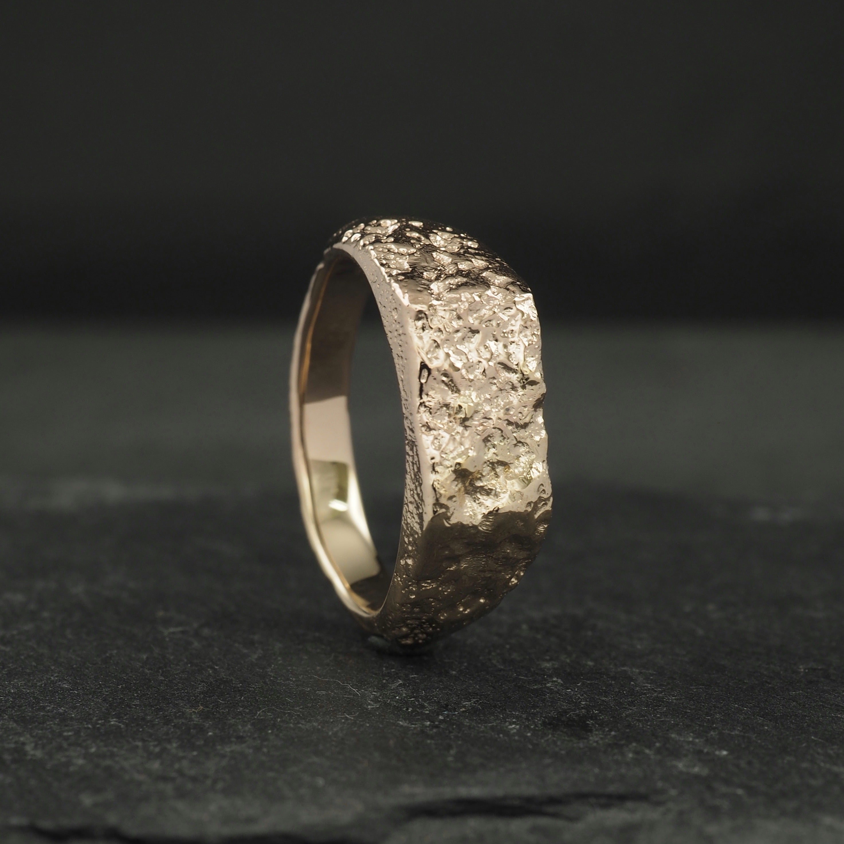 Custom double cast Crater ring in 9k yellow gold and 9k rose gold