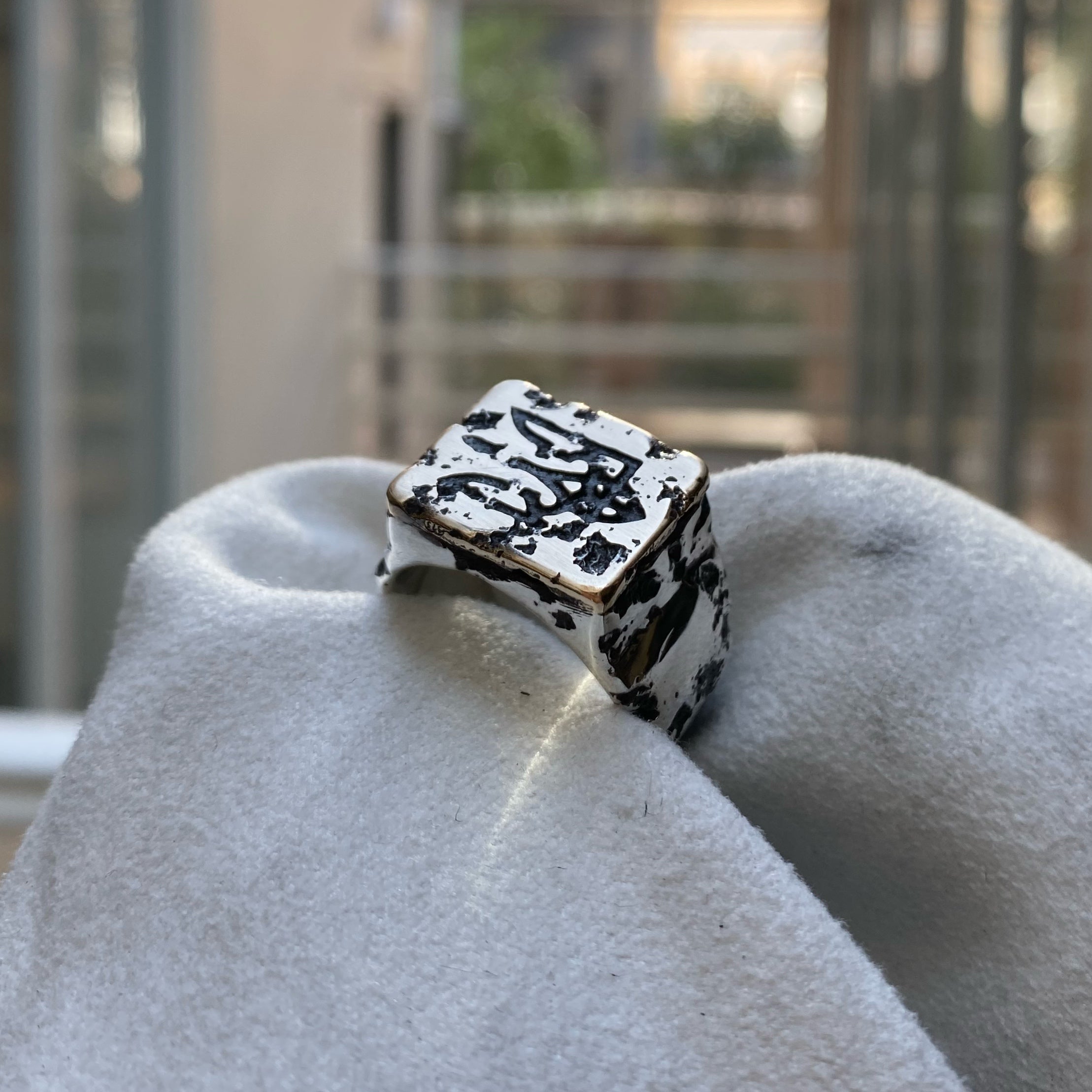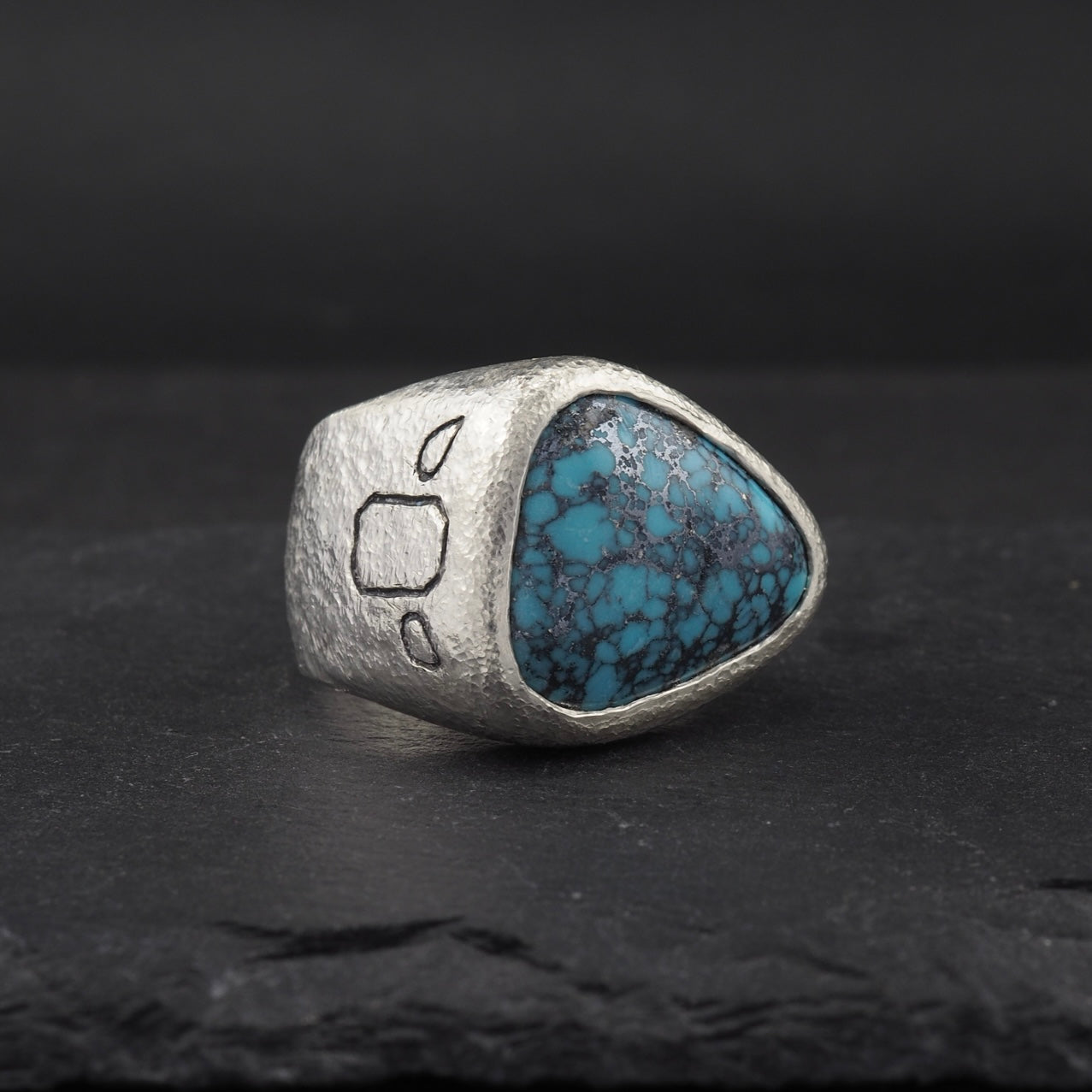 Turquoise textured ring with engraving