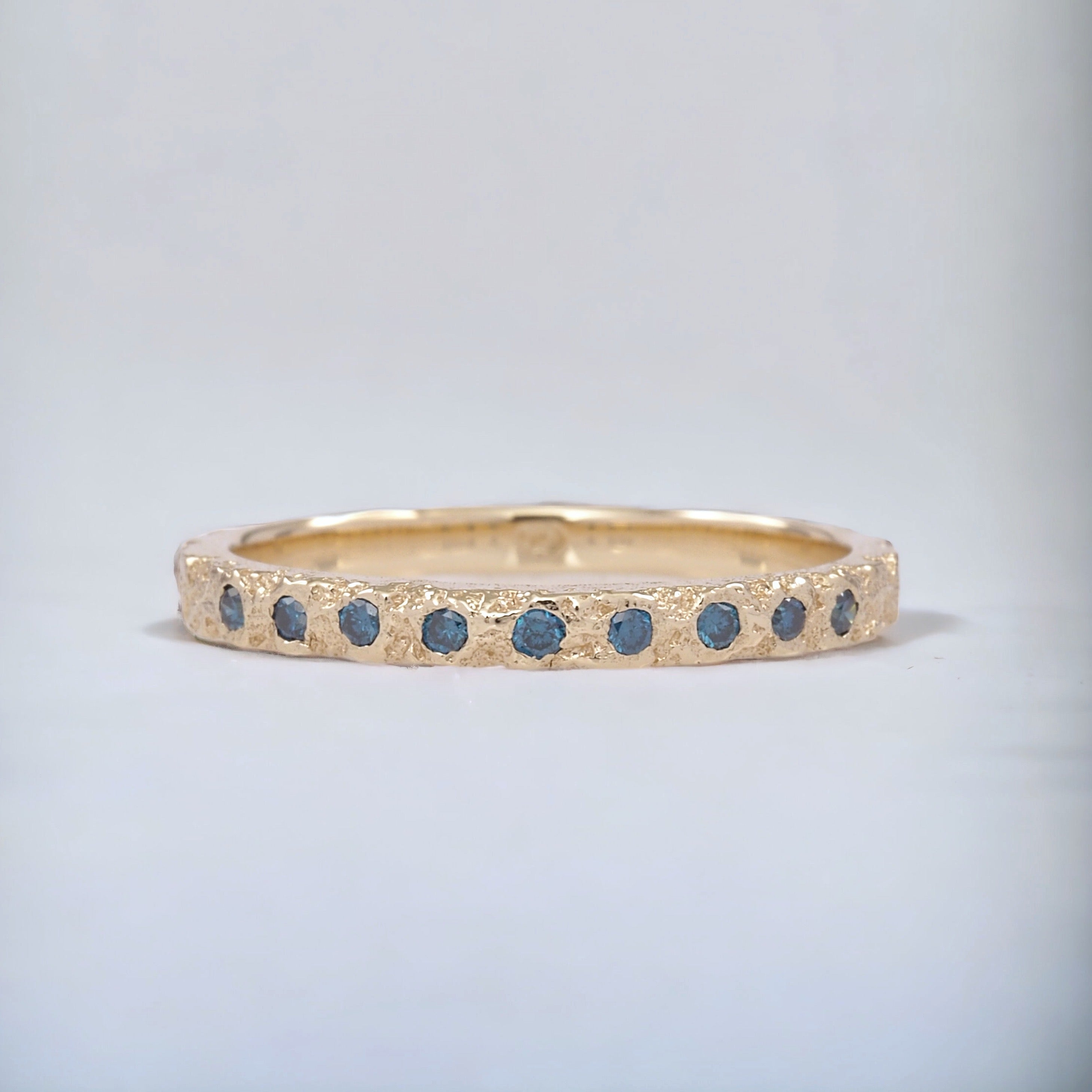 Crater 9k yellow gold with 9 blue diamonds